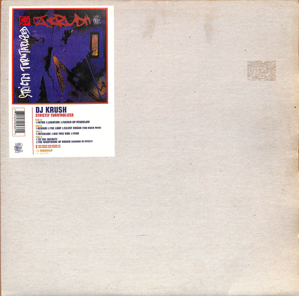ARTIST: DJ KrushTITLE: Strictly TurntablizedLABEL: Mo WaxCAT: MW025LPTYPE: VinylFORMAT: 2xVinylCOUNTRY: UK, Europe & USRELEASED: 1996GENRE: Electronic, Hip HopSTYLES: Breaks, Downtempo, Trip HopWEIGHT: 410g