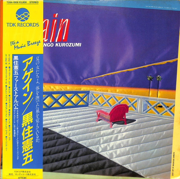 ARTIST: Kengo KurozumiTITLE: AgainLABEL: TDK RecordsCAT: T28A-1008TYPE: VinylFORMAT: VinylCOUNTRY: JapanRELEASED: 1982-10-21GENRE: Funk / Soul, PopSTYLES: Boogie, City Pop, FunkWEIGHT: 270g